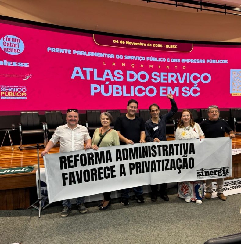 Nesta terça-feira (4/11), o Sinergia esteve presente no lançamento do Atlas do Serviço Público de Santa Catarina, iniciativa organizada pela Frente Parlamentar em Defesa do Serviço Público e pelo Fórum Catarinense de Defesa do Serviço Público.